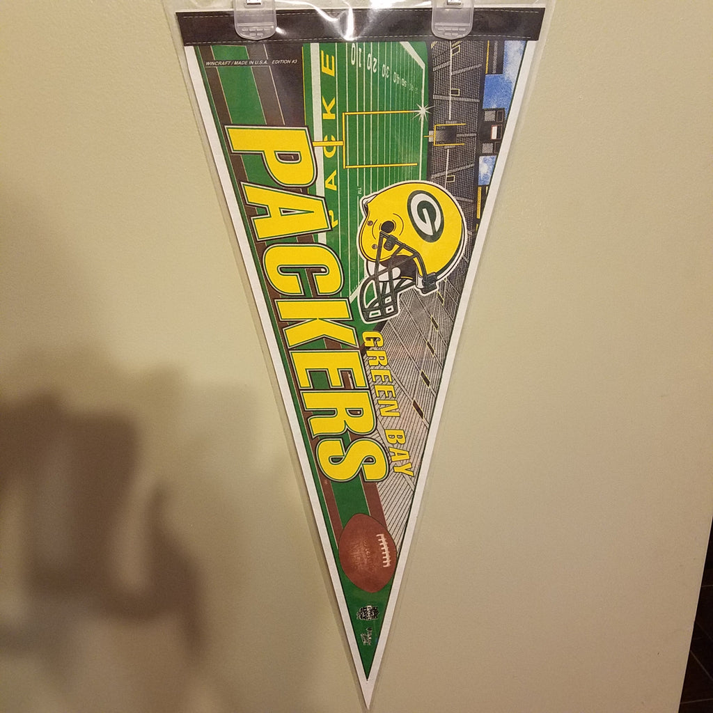 GREEN BAY PACKERS STADIUM VINTAGE NFL FELT PENNANT WITH HOLDER
